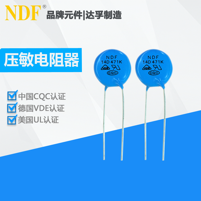 ? ? ? ?壓敏電阻器14D471K是以氧化鋅為主要材料制造的半導體陶瓷元件,其電阻值隨施加電壓的變化而呈線性變化。具有體積小、通流量大等特點.主要半導體器件保護、家用電器浪涌過電壓保護、通信、測量儀器的過電壓保護。