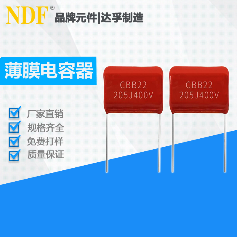 薄膜電容器CBB22-205J(400V)是以有機(jī)塑料薄膜做介質(zhì),以金屬化薄膜做電極,通過卷繞方式制成(疊片結(jié)構(gòu)除外)制成的電容,金屬化薄膜電容器所使用的薄膜有聚乙酯、聚丙烯、聚碳酸酯等,除了卷繞型之外,也有疊層型。其中以聚酯膜介質(zhì)和聚丙烯膜介質(zhì)應(yīng)用廣。